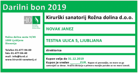 Darilnega bona za naše storitve bodo prav gotovo veseli vaši svojci ali prijatelji, saj si bodo z njim lahko pomagali pri lažji dostopnosti do zdravstvenih storitev in rešitvi zdravstvenih težav. Vrednostni bon lahko naročite na e-mail naslovu polona.laharnar@ksrd.si. Za pripravo darilnega bona potrebujemo ime in priimek koristnika, njegov naslov in znesek darilnega bona. Če želite dodatne informacije nas lahko tudi pokličite na telefonsko številko +386 (1) 477 94 14 in skupaj bomo našli idealno kombinacijo za darilo.